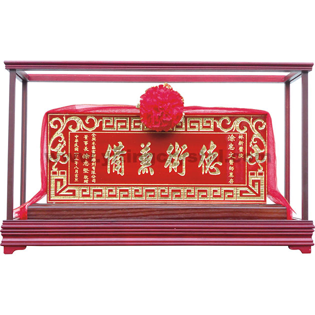 匾額-E0385-迷你型木匾+雙龍萬字框+紅底金字