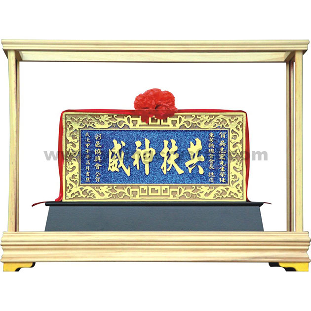 匾額-E0381-金蔥迷你匾+九龍框+藍蔥底金字
