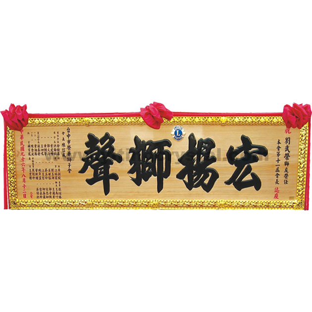 匾額-E0021-傳統木匾-原木色黑字+蓮花邊