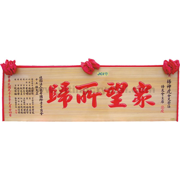 匾額-E0024-傳統木匾-原木底紅字