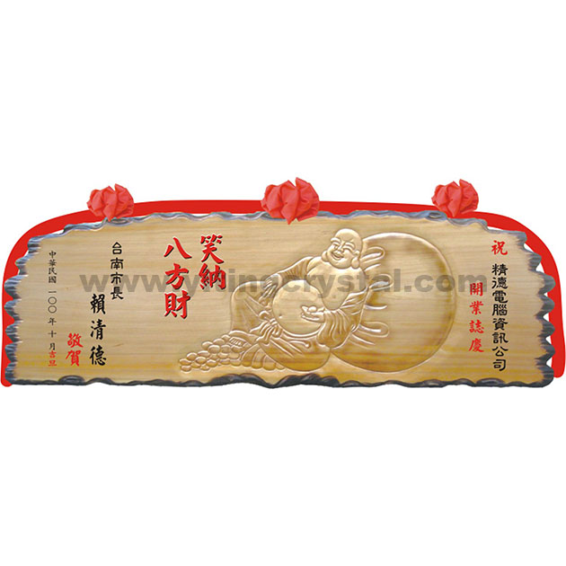匾額-E0136-木匾-笑納八方財+奇木邊